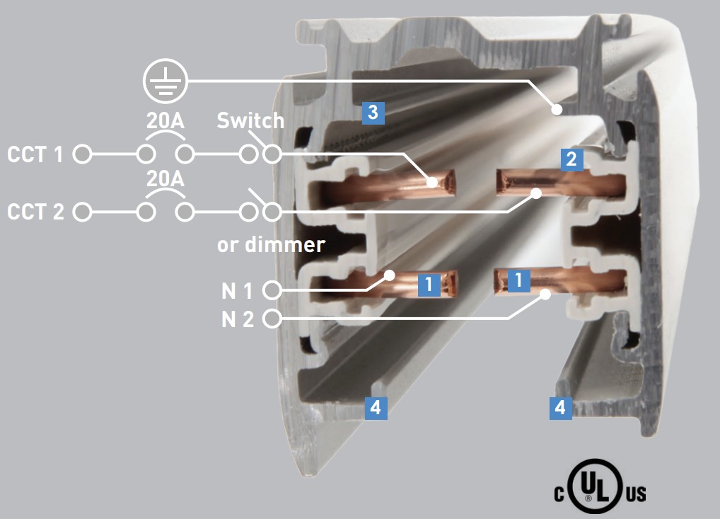 - High quality, UL listed 2-cct/2-neutral lighting track system, 277V