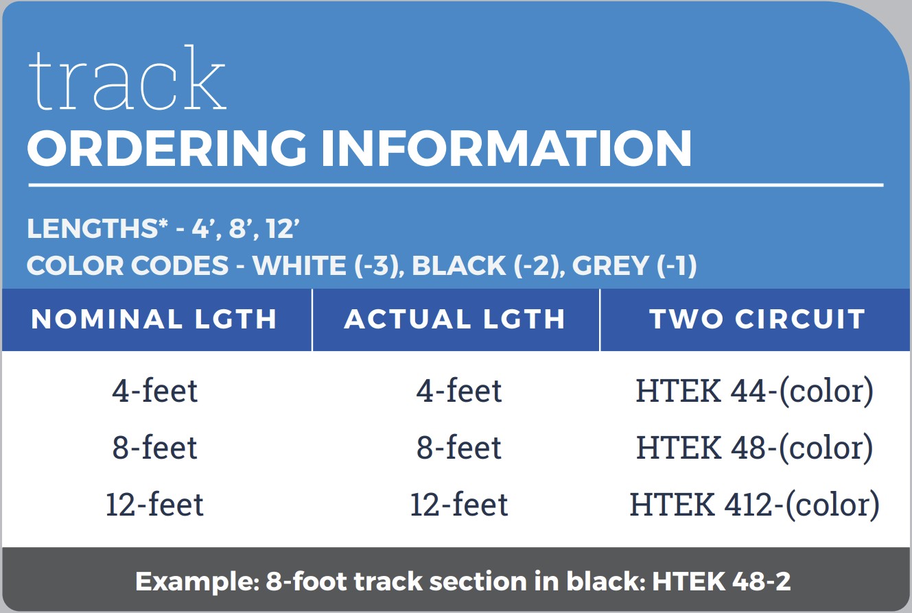 - Over twice the capacity of standard 120V track (5,540W/cct vs. 2,400W cct)